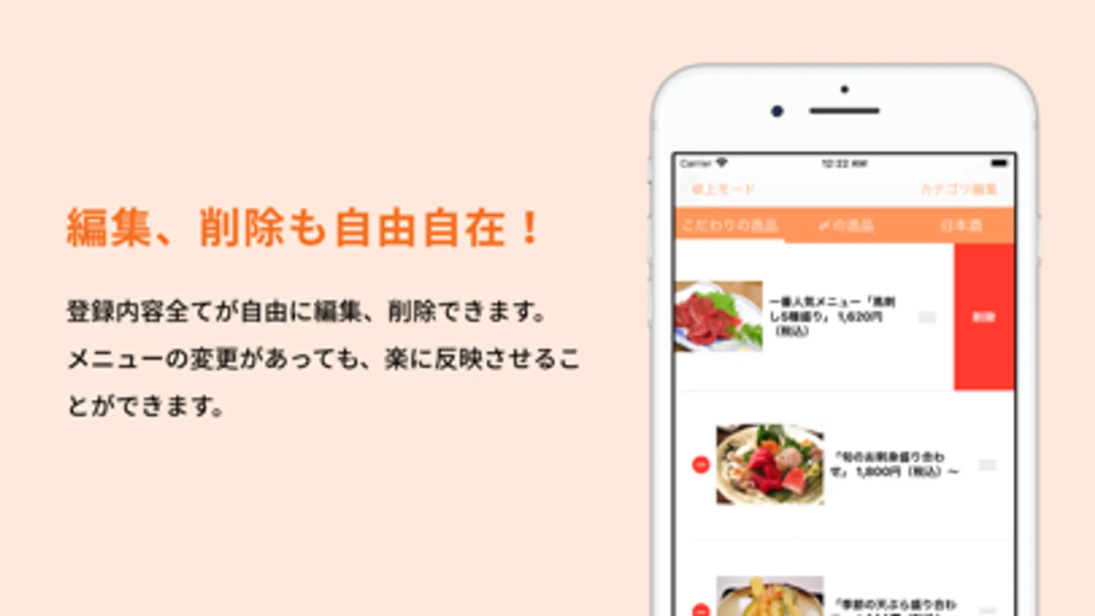 ・メニュー表の写真や説明文を簡単に修正できます。