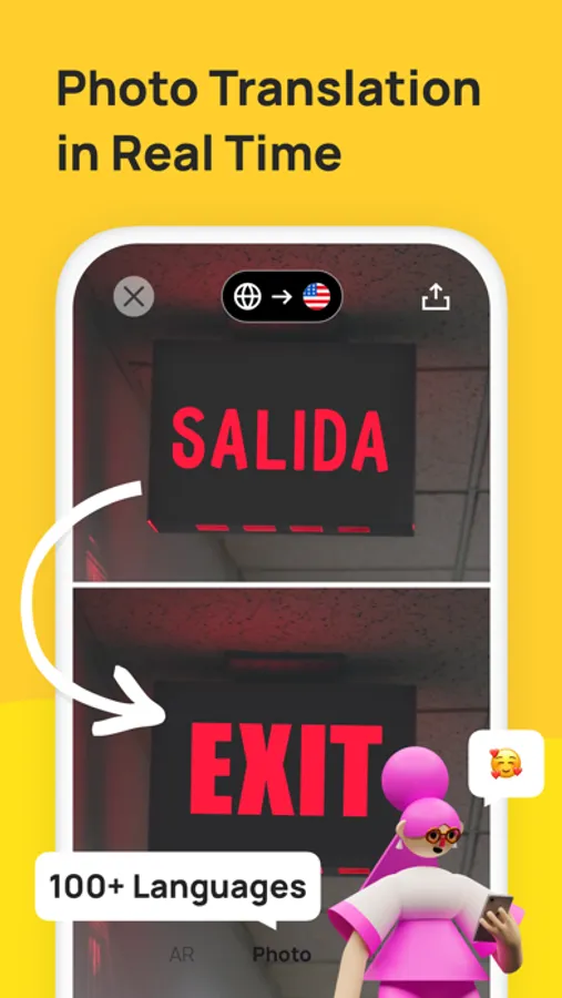 AR Translator will instantly extract the text from the camera's video stream and translate it into any of 100+ languages (no need to take a photo).