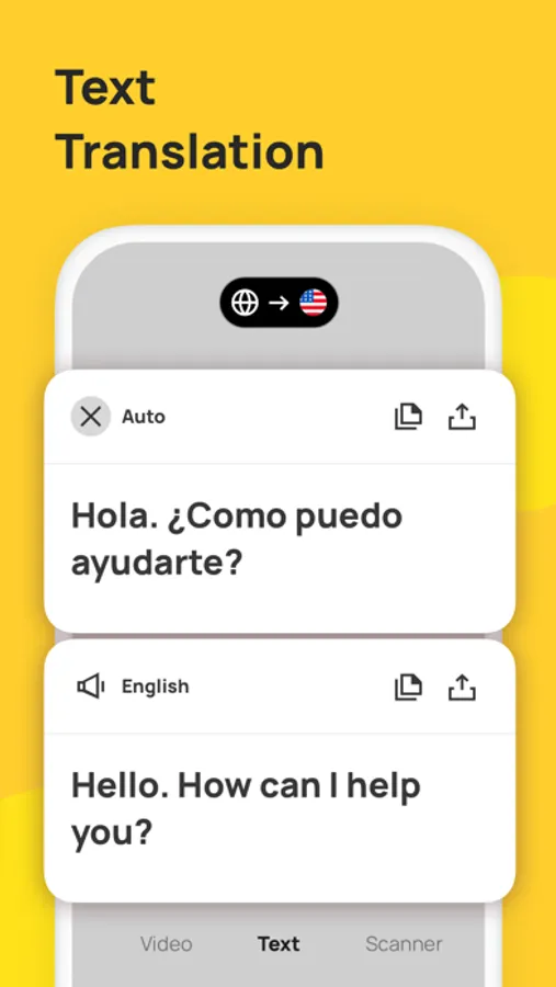 ● Ability to copy the translation or scanned text and transfer it to other apps