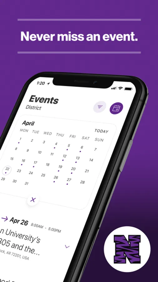 The event section shows a list of events throughout the district. Users can add an event to your calendar to share the event with friends and family with one tap.
