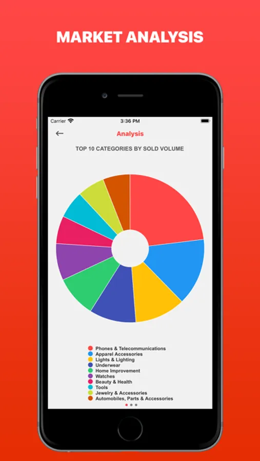 • Market Analysis: Monitor and analyze the market with detailed statistics charts of best-selling categories.