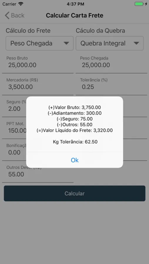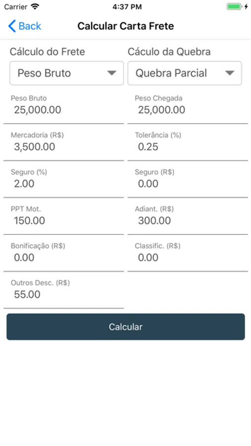 O Connect Posto - Calculadora de Carta Frete possui uma ferramenta completa para obter o cálculo de uma carta frete.