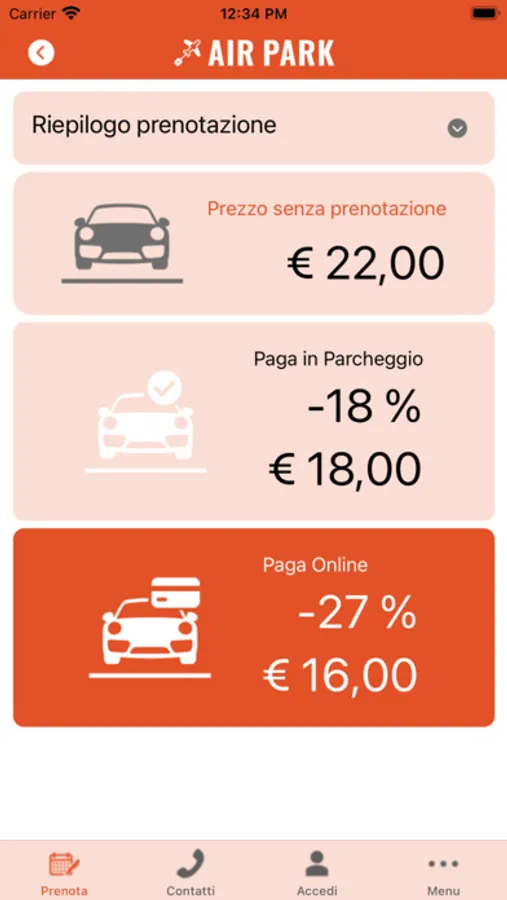 Le tariffe, i metodi di pagamento e le modalità di prenotazione sono quelli dei più moderni parcheggi aeroportuali, con offerte ed agevolazioni specifiche, oltre alla possibilità di effettuare prenotazioni e pagamenti on-line, oppure con carte di credito e bancomat, o in contanti, direttamente in parcheggio.