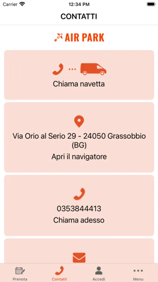 Il parcheggio AIR PARK, presso l’aeroporto internazionale di Bergamo Orio al Serio “Il Caravaggio”, è dotato di moltissimi posti auto sia scoperti che coperti ed è custodito e videosorvegliato 24 ore su 24, sempre aperto, 365 giorni all’anno, con servizio navetta gratuito per l’aeroporto e personale qualificato anche per servizi accessori come lavaggio auto, ripristino cali batteria, controllo pressione pneumatici e addirittura la possibilità di far effettuare la revisione ministeriale del veicolo, tramite officina autorizzata.