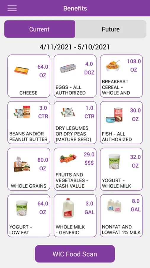 - Healthy foods from WIC approved grocery stores such as fruits and vegetables, whole grains, milk, eggs, bread, cereal, juice, peanut butter, soy milk, tofu and much more.