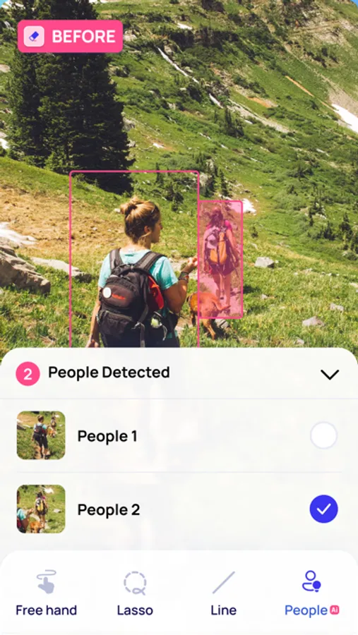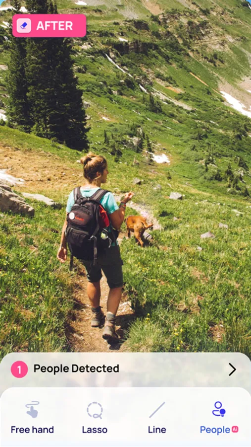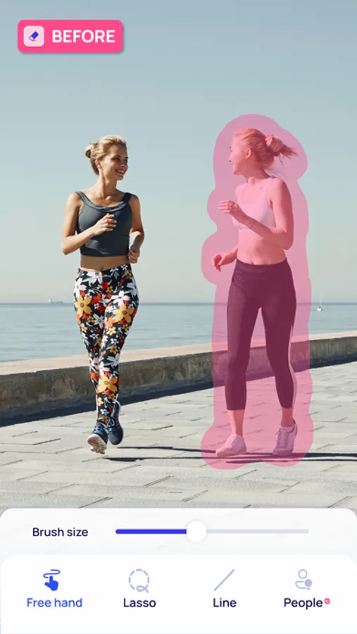 - Free Hand and Lasso Tools: For more control over the editing process, the app also provides standard free hand and lasso tools, allowing you to precisely select and remove unwanted items from your pictures.