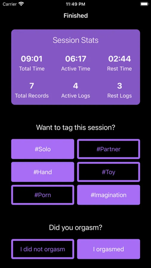 With Edge, you can time your masturbation and sex sessions, including the "active" and "resting" parts. You can then view the statistics on your past performances. Thus, by practicing edging over a period of time, Edge will illuminate your performance trends and allow you to adjust your strategy to ultimately last longer in bed!