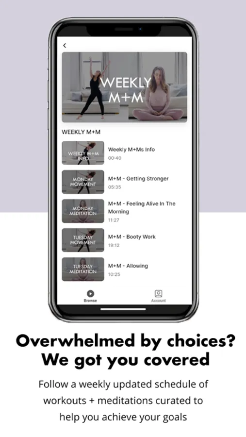 Weekly M + M’s: No need to think about what to do each day, Erin provides you with a daily movement + meditation schedule, so you can effortlessly vary lengths and styles of workouts every day.