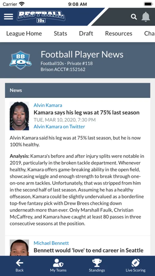 Follow the in-season action and watch the stats from players on your roster update with live scoring. This app contains everything you need on Draft Day, and all the features you'll want after Draft Day to see your team win the league championship.
