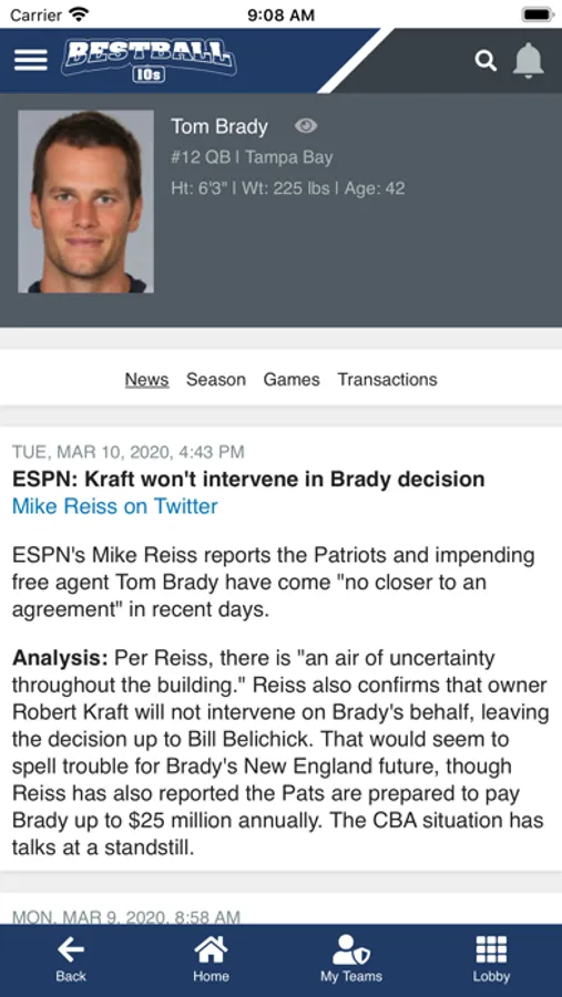 These are Best Ball leagues, so there's no in-season management of your team. The computer picks your optimal scoring lineup every week.