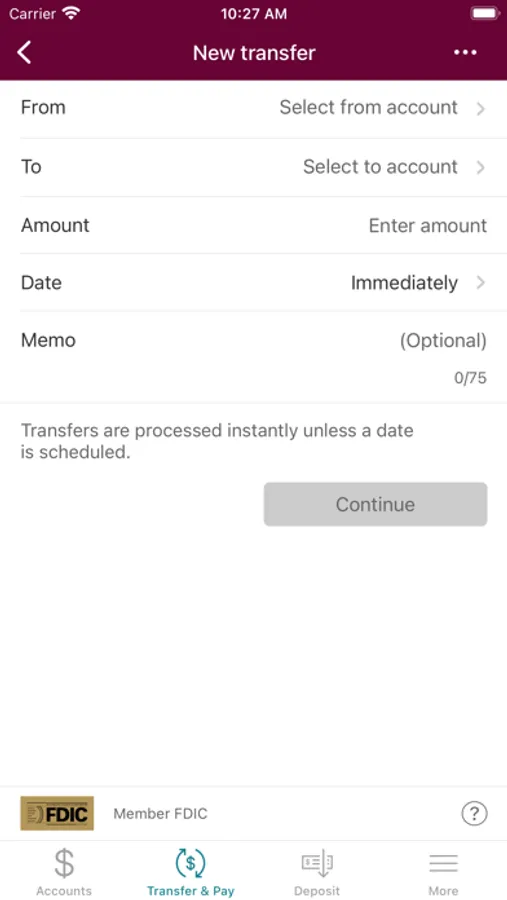 The ease of banking at the touch of a finger. You will be able to check your balance, transfer funds and pay your bills.