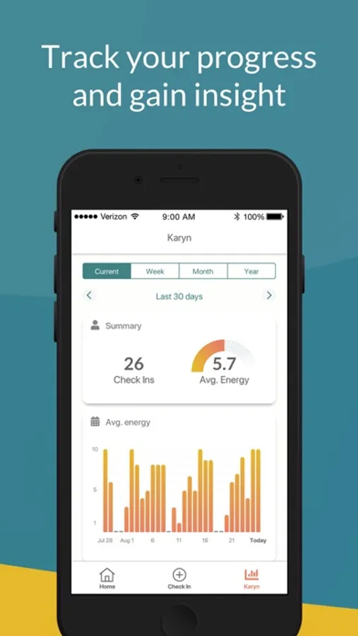 Each check-in will be saved to your history and secured by pin lock. You can use CheckingIn’s powerful Insights functionality to view and analyze your historical data and keep growing your self-awareness.