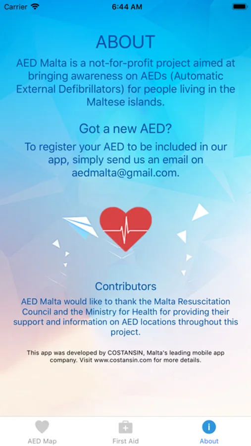 To register your AED to be included in our app, simply send us an email on aedmalta@gmail.com.