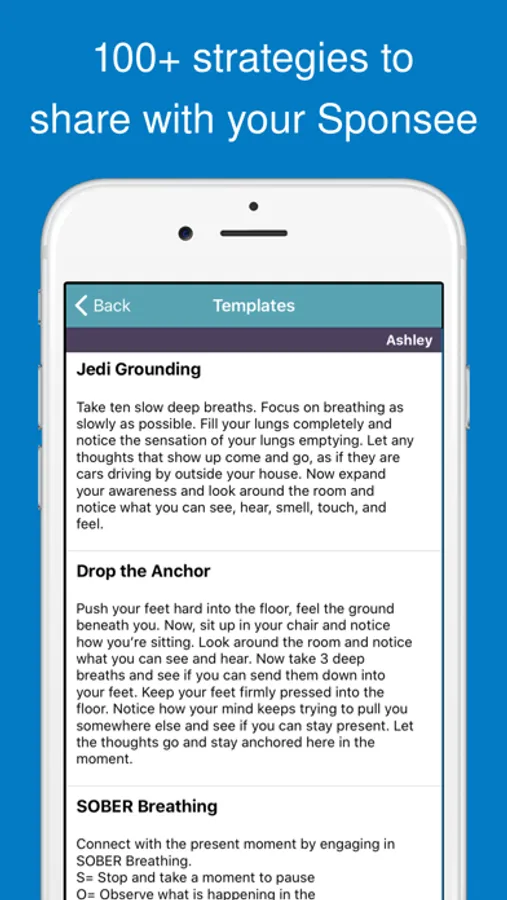 Select from hundreds of coping strategies and resources for your sponsee to use