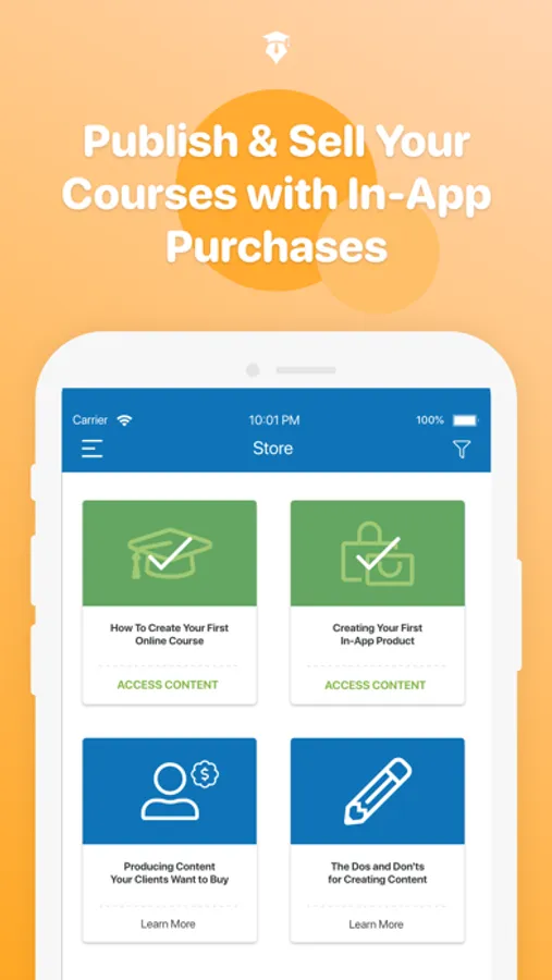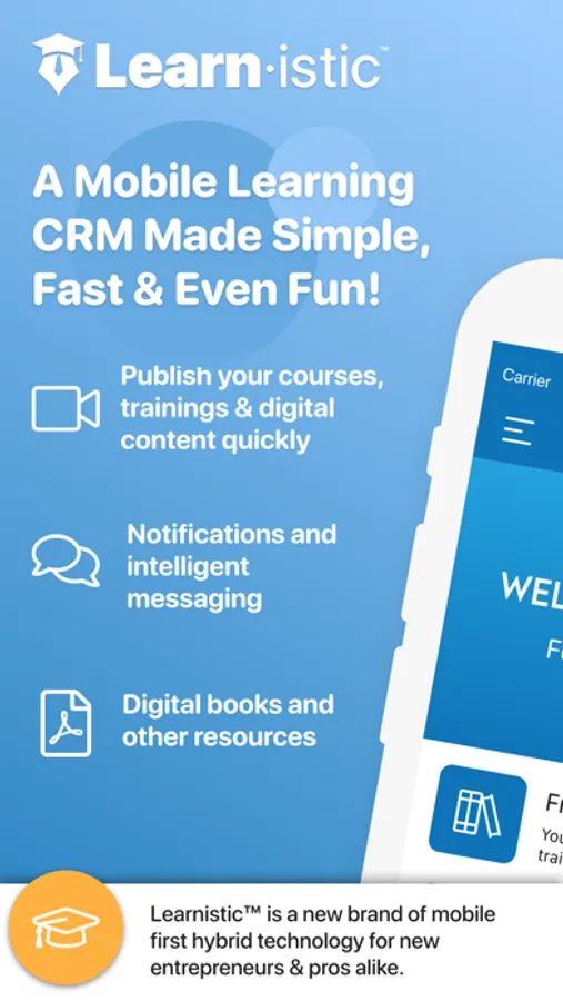With the Learnistic CRM and mobile learning platform you can manage your own contacts as well as offer them free and paid training courses which you can setup via in-app purchases. Create your very own Learniverse!