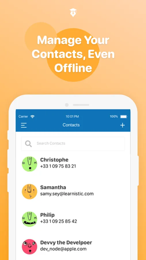 • Manage your contacts while online or offline