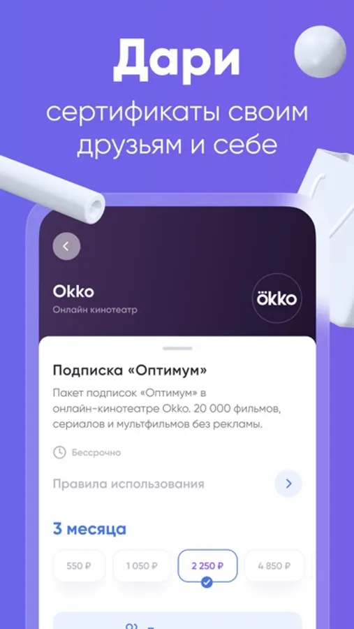 – Подарочные сертификаты: купите прямо в приложении и мгновенно подарите друзьям.