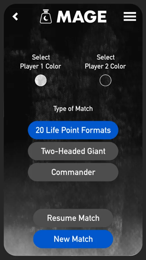 Mage is a life counter app for the trading card game Magic the Gathering. I really enjoy playing Magic with my wife and friends but found keeping track of the life counts slightly fussy. Mage exists to streamline keeping track of what is going on in a match. You can add and subtract life easily, and keep track of other necessary counters. I plan to develop new features and potentially add new themes in the upcoming months once I see how everyone responds to the app.