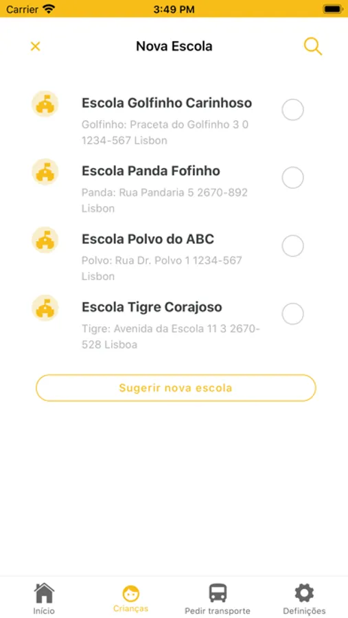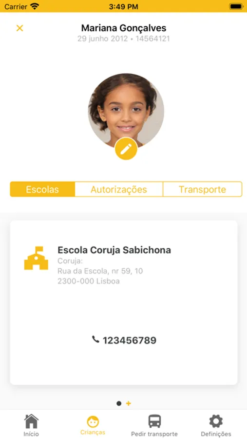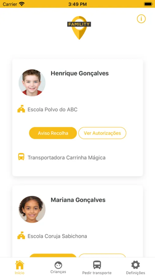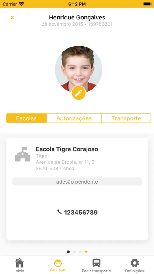 The app's features will only be active after the children's adhesion by the respective Schools and Carriers has been validated.