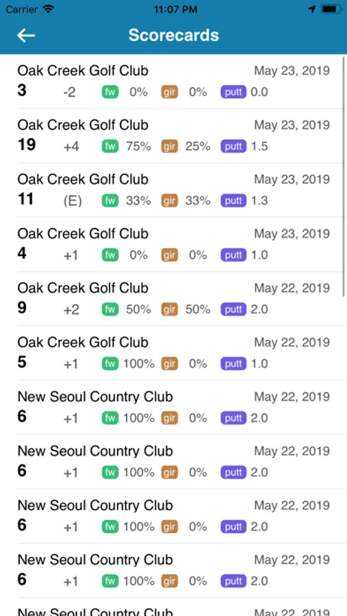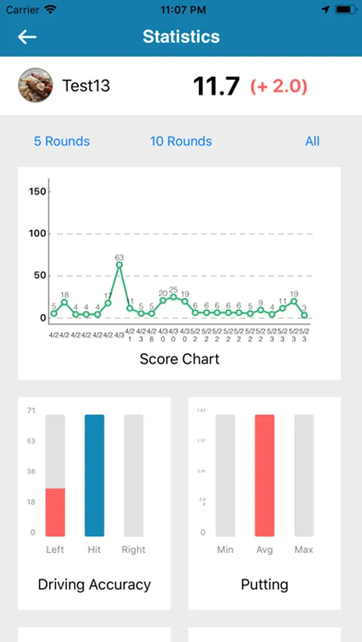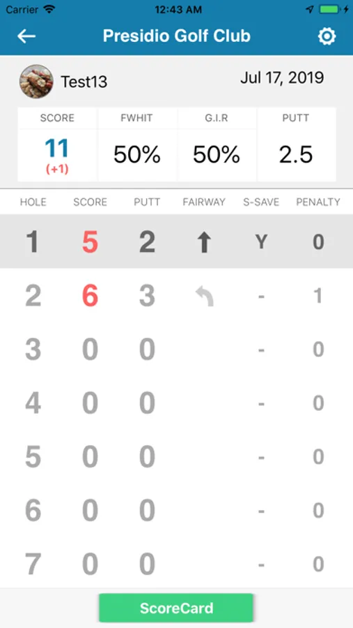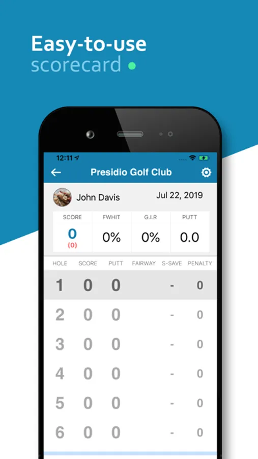 - Smart score system (fairway hit, G.I.R, SandSave, Putts, Penalty)