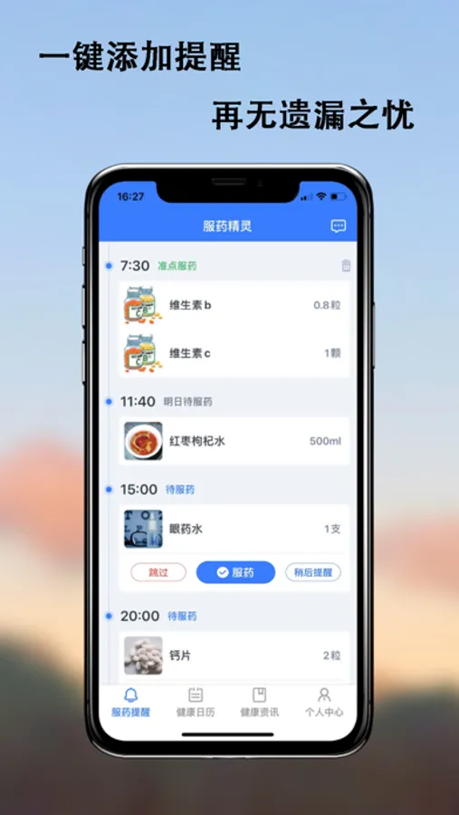 服药精灵是一款健康习惯管理app,我们提供了如下功能: