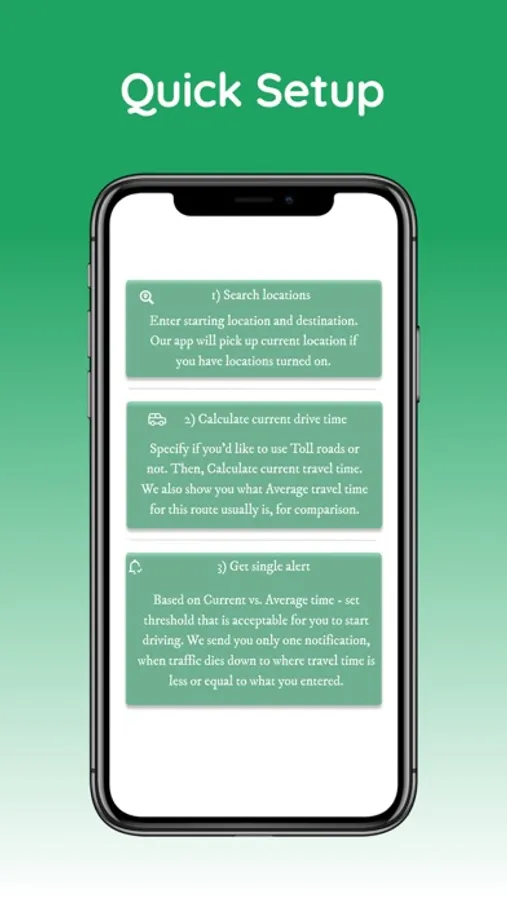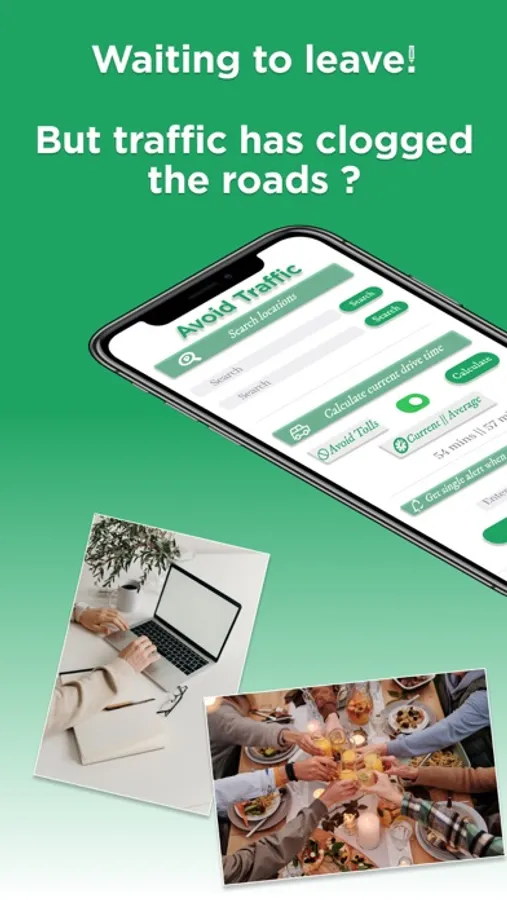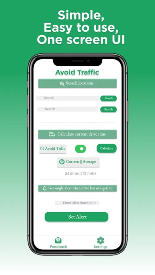 Tell our app what is your acceptable travel commute time and this app will alert you when the traffic dies down, and your commute time from A to B is less than or equal to your acceptable time limit.
