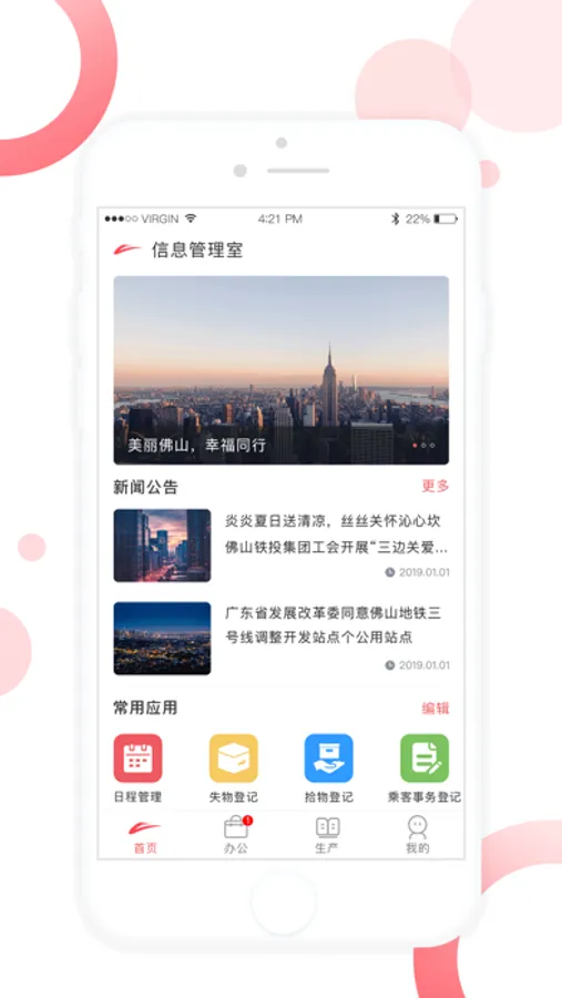 佛轨运营app是佛山地铁运营事业总部研发的应用软件,软件提供最新最及时的集团新闻资讯信息,乘客事务处理、拾物招领管理、日程管理等日常应用。