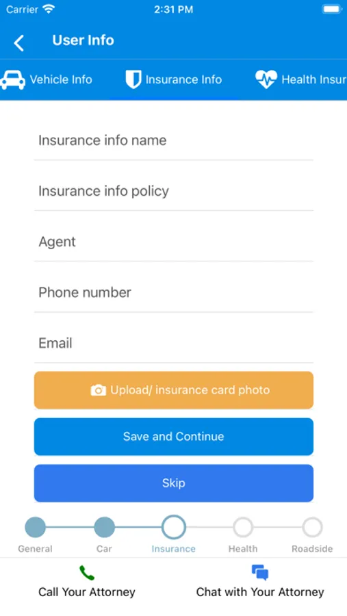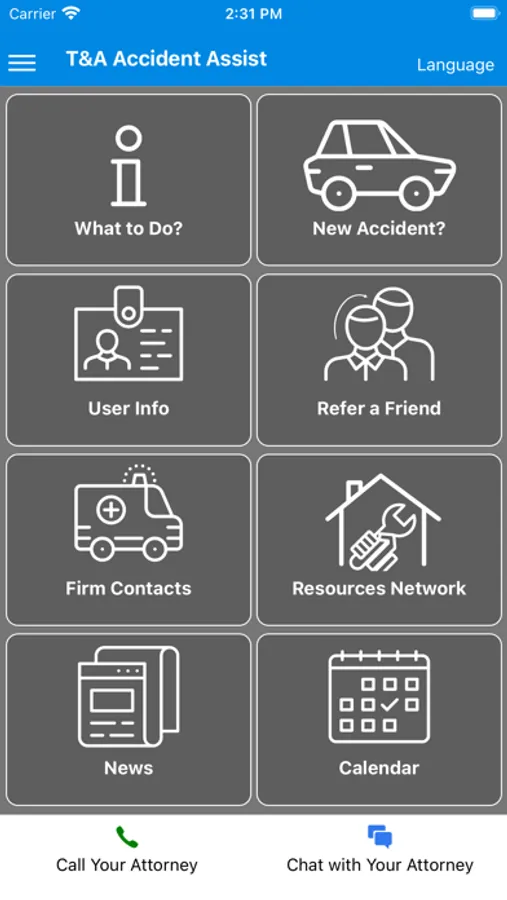 The core feature of our App is the ability to live chat with your attorney office to ask questions, get updates, and more. Our system allows you access into your favorite firm to store all drivers information for when you need it most. Store your drivers license, car insurance, roadside assistance, and more. Involved in an accident, have the ability to report ll new car accidents directly though our mobile app and instantly notify our legal team of what happened. Next chat with us for the next steps.