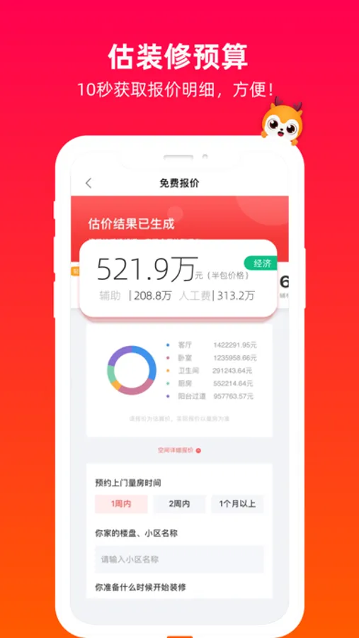【智能报价】准确报价误差小,拒绝恶意增项0陷阱。5万余家正规装修公司,550万余条装修案例,耗时三年的数据分析,为您提供准确的报价。