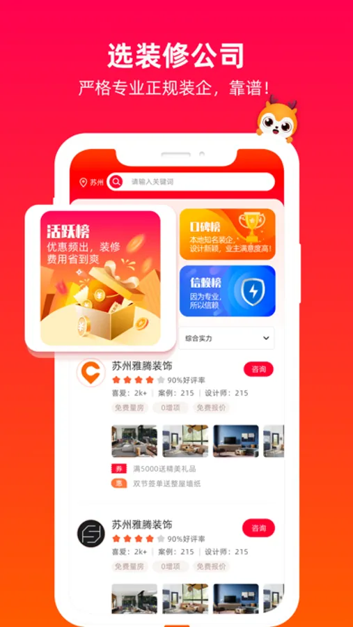 在这里量房,设计,报价[不花一分钱],六项服务保障升级,8万装修公司,103万设计师为您私人订制,1500万服务业主齐力推荐。