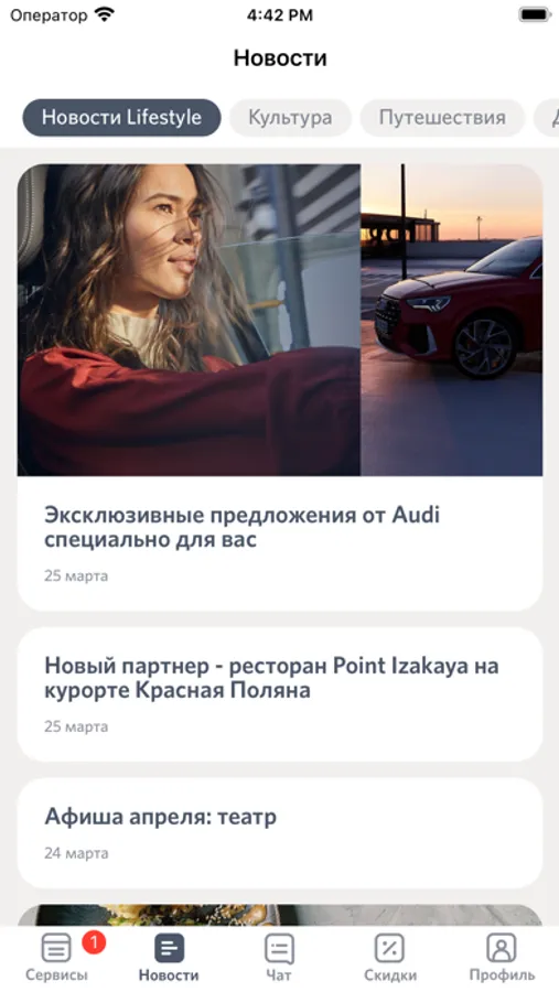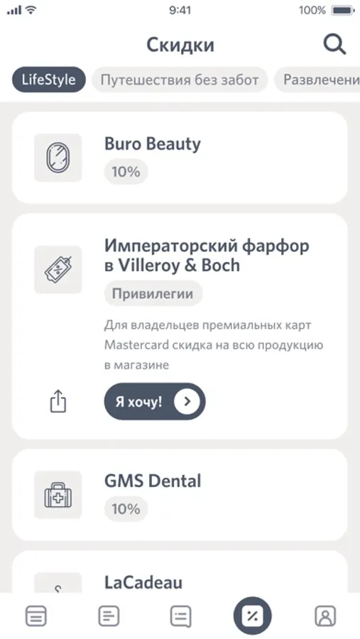 ∙ в разделе «Скидки» узнавать о привилегиях в ресторанах, отелях, салонах красоты, бутиках и не только