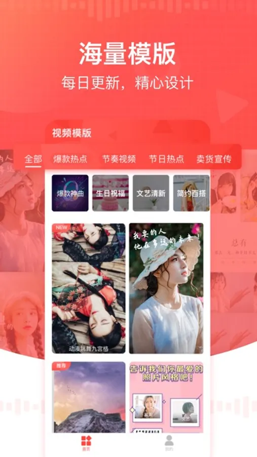 全能视频模板是一款不可思议的视频制作软件,海量模板轻松搞定电子相册,照片相册和音乐相册制作。图片+图片,图片+视频自由任意组合!多视频支持同时播放和依次播放,无需复杂操作,三步轻松搞定。