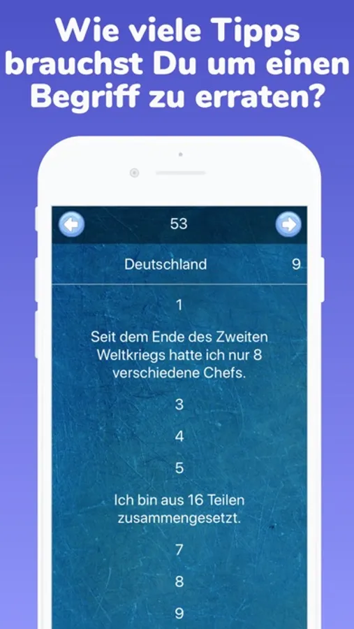 10 Tipps: Ihr könnt pro Suchbegriff bis zu 10 Tipps erhalten. Aber Achtung: Natürlich verringert sich mit jedem Tipp eure Punktzahl. Und die Tipps sind manchmal nur für Leute die um die Ecke denken können. Seid ihr auf zack?