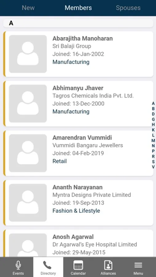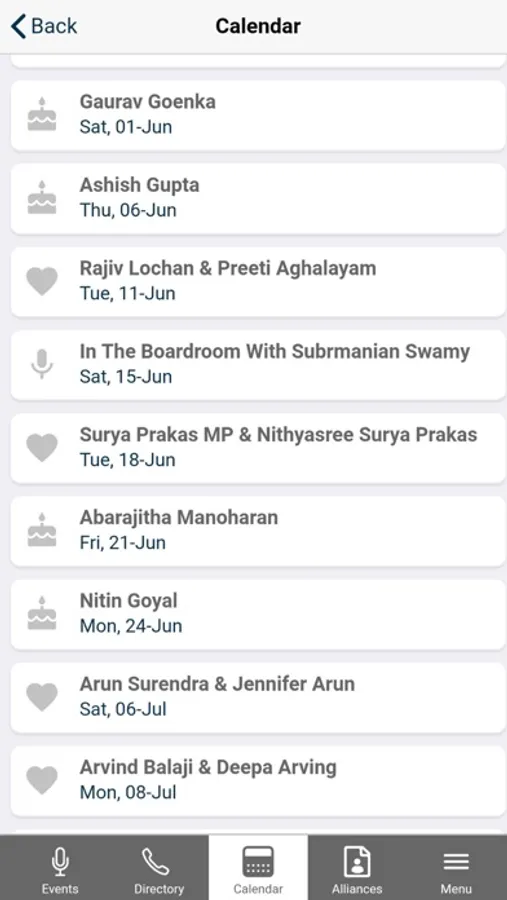 - CALENDAR : Calendar of Birthdays, Anniversaries of Members and Spouses.