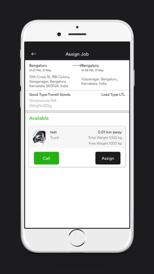 The application can be used by the divers as well as the managers of the operator, with individual logins for each of them. The managers can negotiate with customers for loads and once the load has been assigned to their company, the manager can 'assign' this load to one of their own drivers. All the drivers who are available are visible on the 'assign' screen and the manager can has the option to call them on the same screen too.