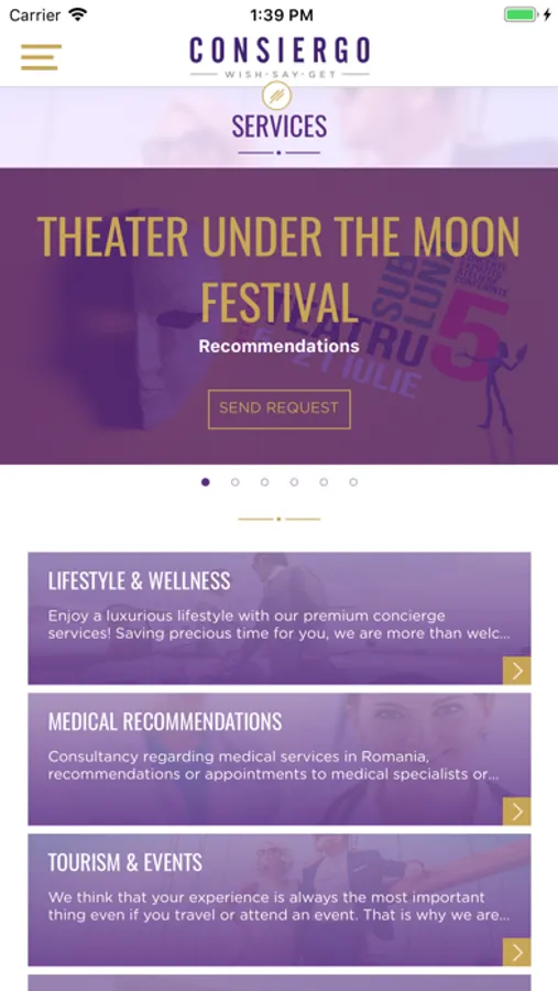 Consiergo este singura companie full-service de concierge din România cu furnizori din toată lumea și expertiză internațională. Oferim consultanță specializată și recomandări în domeniile de Lifestyle & Wellness, Turism &Evenimente, Casă & Administrative și Recomandări medicale.