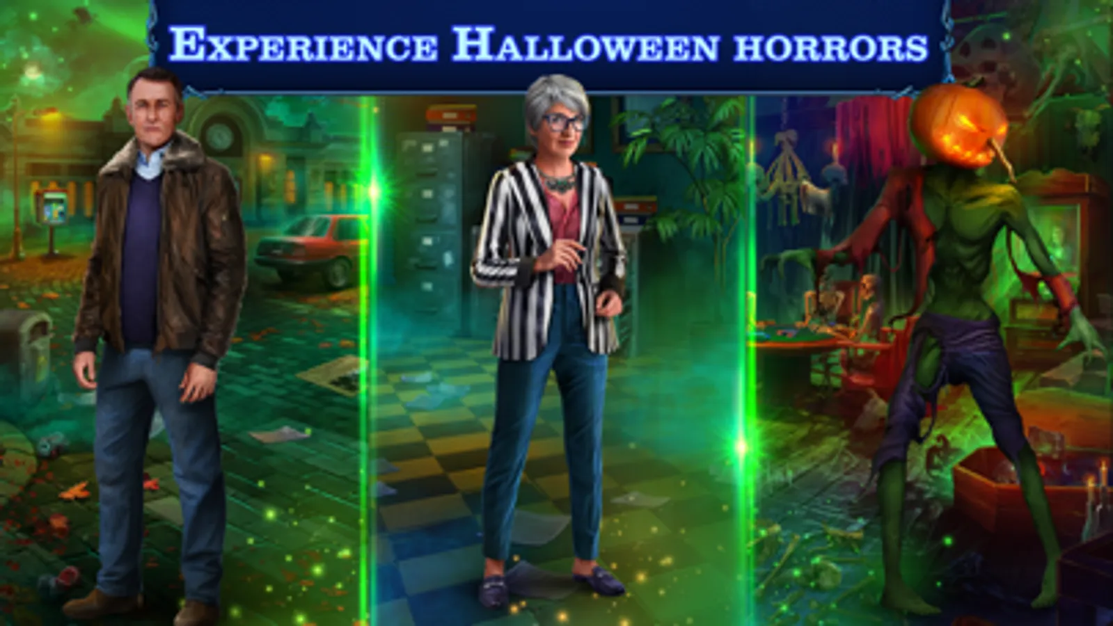 Our mystery games welcome you into a story. It’s Halloween, and your dad has invited you to celebrate with him in your hometown. You are to going to have a great time together, playing hidden objects games, looking for hidden artifacts and trick-or-treating! You’re excited for your reunion, but your joy is quickly overshadowed by eerie creatures invading your home! It’s up to you to play Halloween games to delve into your family’s secret history and stop the evil monsters. Do you have what it takes to save the town from a terrible fate before it’s too late? Find out in this thrilling free hidden object game for iPad!