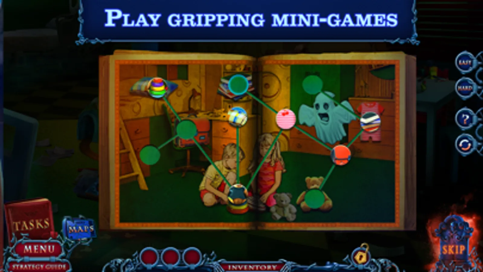 Evil ghosts siblings stole your magic camera to use it for their horrible purposes! Play hidden object adventure games and solve intriguing puzzles to track down the ghosts and retrieve your family artifact!