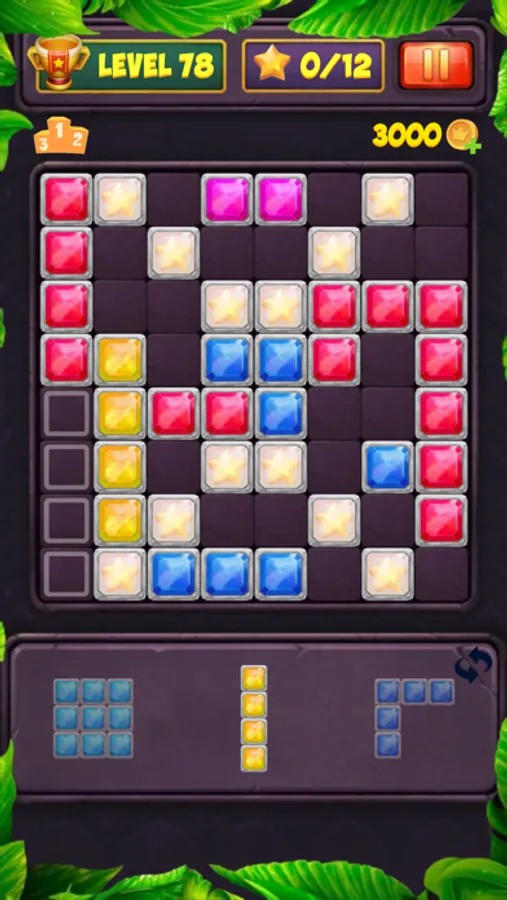 No time limit, no color matching! Just fill the grid with shapes to form a line and train your brain with Block Puzzle Jewel. Collect enough stars to complete the levels