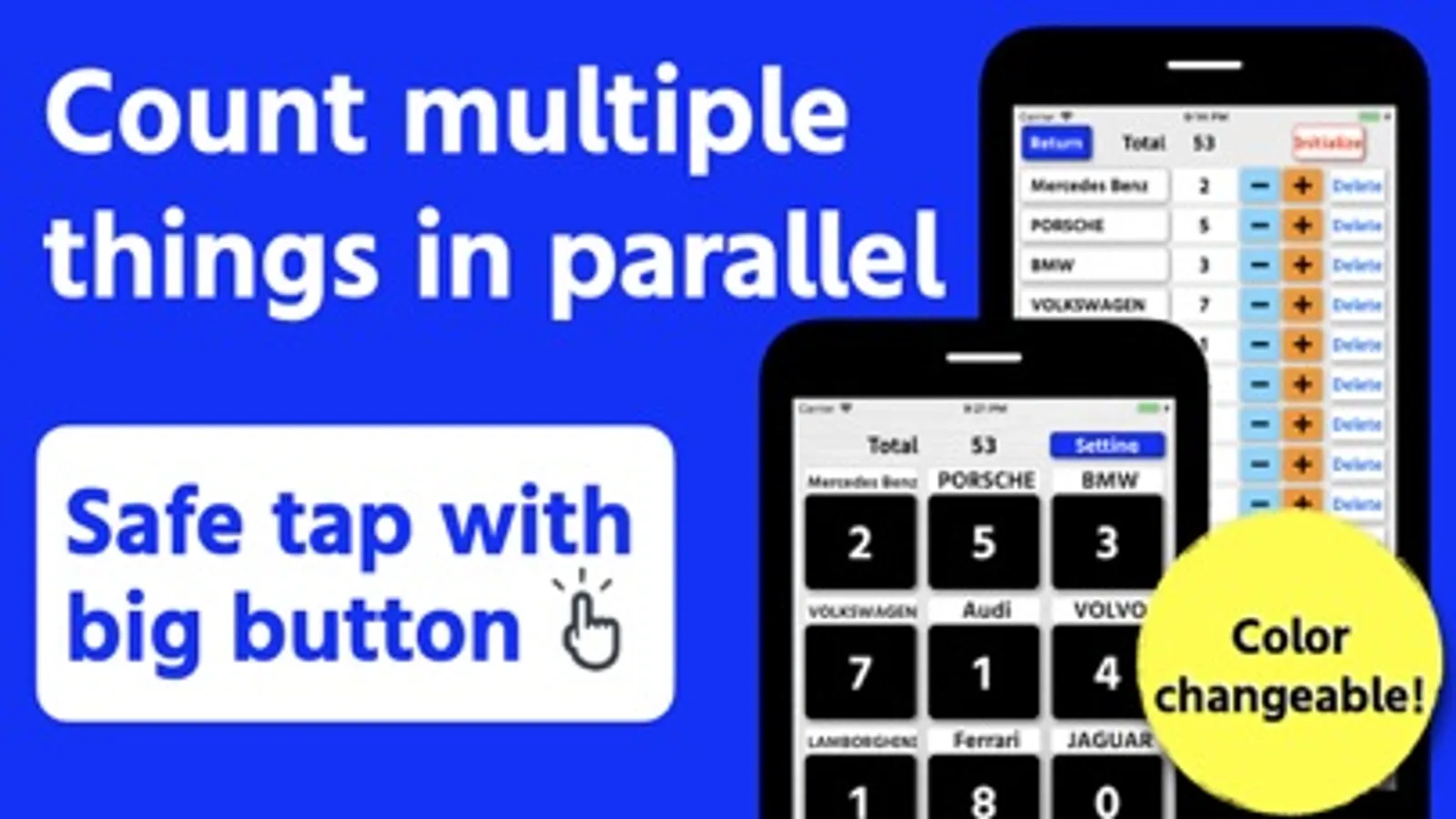 - Fine adjustment of the count and change of the name and count value are possible on the "Setting" screen.