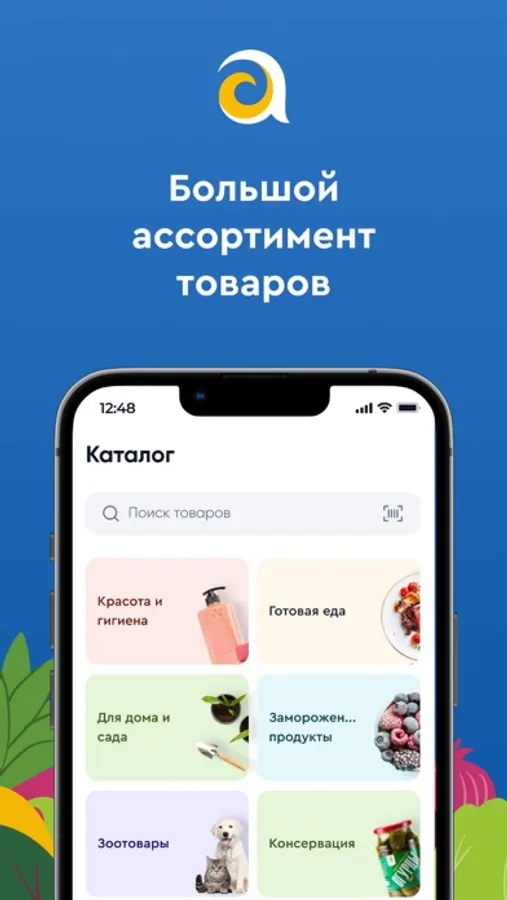 - Более 10 000 позиций продуктов и товаров для доставки: свежие овощи и фрукты, молочные продукты и яйца, мясо, рыба и морепродукты, бакалея, замороженные продукты, хлеб и выпечка, напитки, бытовая химия, товары для животных, товары для дома и для детей, готовая еда и кулинария.