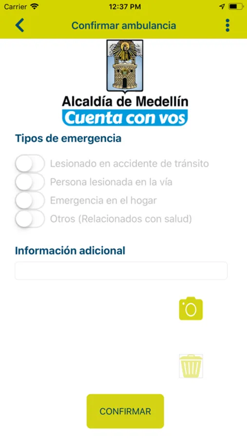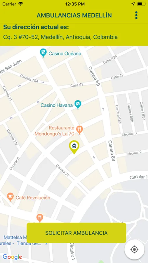 Ambulancias Medellín es una aplicación gratuita de la alcaldía de Medellín que permite al usuario solicitar una ambulancia según cuatro tipos de emergencia: