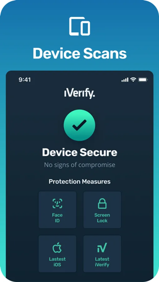 iVerify is your personal security toolkit. Use iVerify to manage the security of your iOS device and detect modifications to your smartphone. iVerify makes it easy to manage the security of your accounts and online presence with simple instructional guides.