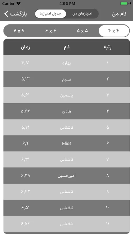میتوانید زمان سایر شرکت کنندگان و همینطور رتبه خودتان را در جدول امتیازها ببینید