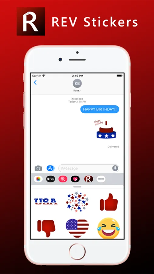 Bring Rev Social Network post reactions to your messages. You can drag and place these stickers on anything in your conversation - bubbles, images, or even other stickers.