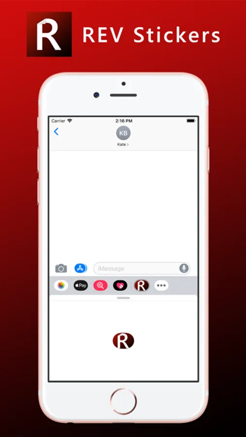 Step 1: Open a message with a friend and tap the app button (it looks like an A). REV Stickers should appear, unless you have other packs installed, in which case swipe right or left until you see REV Stickers app icon.