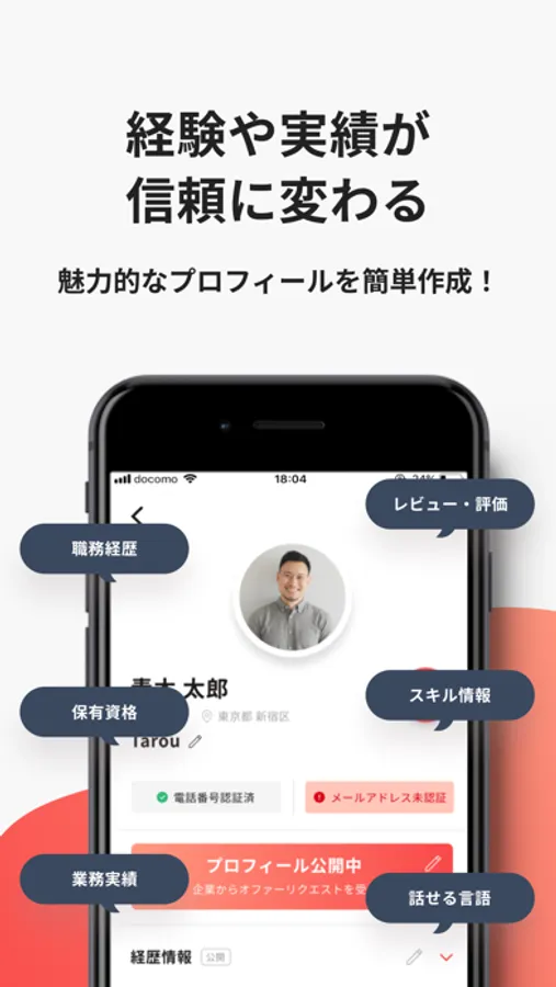 プロフィールを充実しより詳細な情報を入力することで、企業の方が検索〜お仕事依頼(スカウト)をしやすくなります。