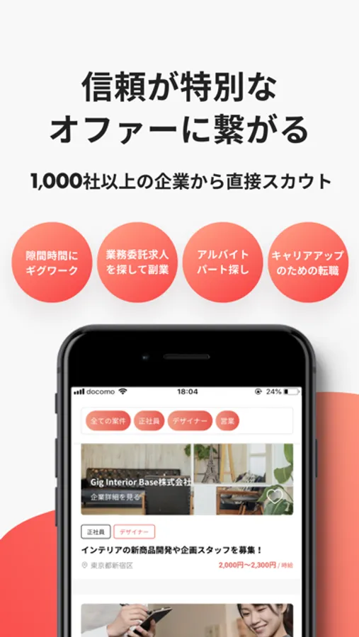 転職やアルバイトだけでなく、副業・ギグワークなど、自身の環境やあなたにあった仕事と出会えます。