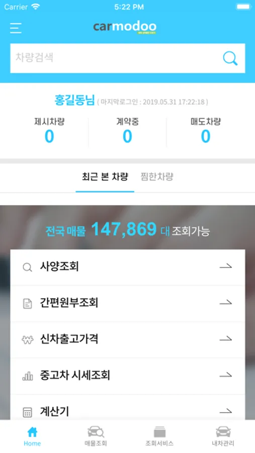 제시차량조회,내차관리, 사진등록,사양조회,간편원부조회,중고차시세,신차정보,이전등록계산기 등 매매시 필요한 정보를 제공합니다.