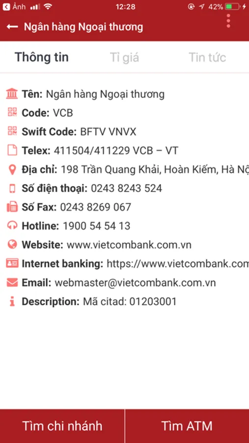 Phần mềm cũng có tiện ích giúp bạn tìm kiếm chi nhánh ngân hàng, ATM theo địa chỉ hoặc địa điểm xung quanh bạn.